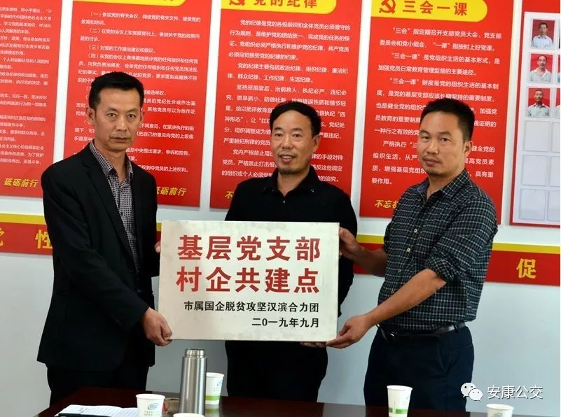(市公交公司黨委副書記錢萬輝和市水務(wù)集團(tuán)公司總會計師陳世安共同為“基層支部村企共建點(diǎn)”授牌)