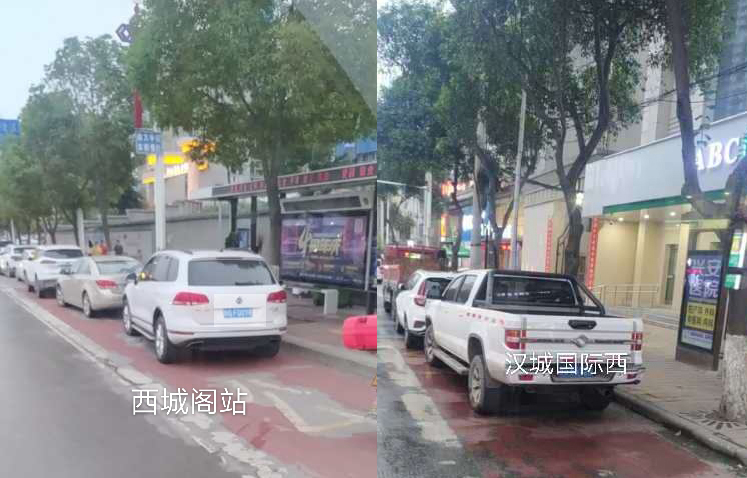 在金州廣場(chǎng)南站,十幾輛私家車“整齊劃一”的停在公交車站位置,地面紅色區(qū)域上的公交兩字也被完全覆蓋,從遠(yuǎn)處望去,站牌旁坐著幾個(gè)人正等待公交車的到來。在興華名城站,一輛私家車??吭诠卉囌厩?,駛來的公交車無法按其規(guī)定進(jìn)站停車。在西城閣站和漢城國(guó)際西站,幾輛私家車甚是“任性”,儼然將公交車站當(dāng)成了“停車場(chǎng)”,筆者在此駐足十幾分鐘,它們依然“紋絲不動(dòng)”,有的車上甚至沒有車主。